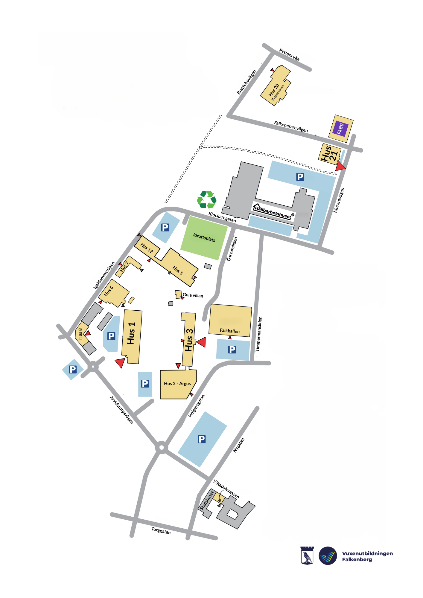 Vuxenutbildningen Falkenberg är uppdelat i flera hus. Nedan hittar du var våra utbildningar och personal finns någonstans.